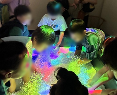 魔法の美術館リターンズ… 公開済み: 2025年10月7日更新: 2025年10月7日作成者: hearty-artカテゴリー: 活動支援日誌 魔法の美術館リターンズ 9月14日(土)・23日(月)にふくやま美術館で行われていた「魔法の美術館リターンズ」へ行きました。 お子さま達は、目や手、足など全身の感覚を通して、音や映像、光のアートを時間を忘れて楽しんでいました。 参加していただいたお子さまの中には普段、美術館は大人しく、静かに鑑賞するものだから行くのは苦手と思い、少し抵抗感を感じているお子さまもいましたが、体験型アートを通して、アートの世界の広さを実感して、美術館という場所に楽しさを感じてもらえる日にもなりました。 バランストンボを作ろう 9月のアート制作は「バランストンボを作ろう」を行いました。 左右対称に作っていく必要があるため、お子さんたちは、いつもは大雑把に切るお子さんも、失敗したくないと、型紙に合わせて、厚紙をゆっくりと切っていました。 切る、貼るときに繊細な指の動きを必要とすることもあり、微細な動きの練習になりました。